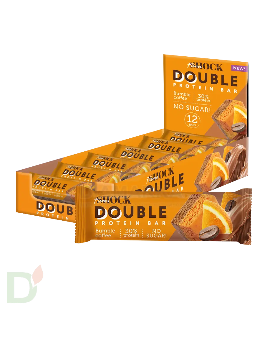 <h2>Протеиновые десерты - десерты 21 века</h2> Есть сладкое и при этом без вреда для здоровья? В 21 веке это реальность. Еще несколько лет назад протеиновые десерты считались едой исключительно для спортсменов. Сейчас же их выбирают многие: люди с диабетом, те кто следит за своим здоровьем и питанием, придерживается диеты, хочет снизить потребление сахара<br> <br> Протеиновая вкусняшка - это идеальный перекус после тренировки, на прогулке, в дороге, в школе или на работе и тд. Его удобно брать с собой. Но главное преимущество батончиков и печений на протеине - невероятная сытость! Например, батончика весом в 40 грамм вполне достаточно, чтобы сбить голод на несколько часов.<br> <br> <h3>Вкусные десерты с пользой для здоровья</h3> О какой пользе речь?<br> <ul> <li>продукция богата протеином. Белок - это основной строительный материал для организма. Мы - дети современности - часто не добираем суточную норму белка. Протеиновые сладости способны этот дефицит восполнить</li> <li> в составе нет сахара. Следовательно, отсутствуют свойственные сахару побочные эффекты</li> <li> содержат пищевые волокна, которые необходимы для нормального функционирования ЖКТ</li> </ul> Батончики линейки Double protein bar содержат ВДВОЕ больше протеина. Значит, вдвое больше пользы и дольше чувство сытости. При этом в них снижено содержание жиров, а следовательно и калорий!<br> <br> Вес батончика 40 грамм<br> <h3>Состав батончика Double protein bar Бамбл Кофе</h3> Смесь белков (концентрат молочного белка, концентрат сывороточного белка), полидекстроза (пищевые волокна), вода питьевая, изомальтоолигосахарид (пищевые волокна), цедра апельсина, натуральный кофе, кокосовое масло.<br> <br> Содержит менее 2%: глицерин (агент влагоудерживающий), сорбит (агент влагоудерживающий), лимонная кислота (регулятор кислотности), соль гималайская розовая, аскорбиновая кислота (регулятор кислотности), сорбат калия (консервант), соевый лецитин (эмульгатор), ароматизатор натуральный «Апельсин», ароматизатор натуральный «Ванилин», стевиозид (подсластитель)<br> <h4>Пищевая и энергетическая ценность на 1 батончик</h4> б - 12<br> ж - 1,8<br> у - 4<br> пищевые волокна - 14,8<br> 110 ккал