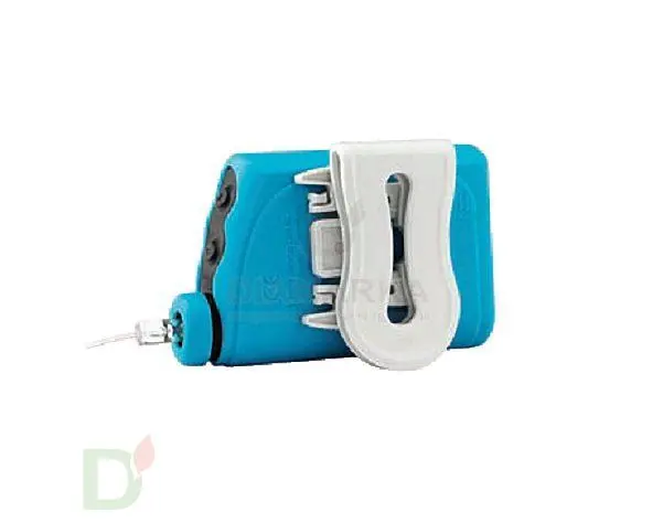 Чехол силиконовый Акку-Чек голубого цвета в комплекте с белой клипсой для удобного крепления инсулинового дозатора Акку Чек Спирит Комбо.