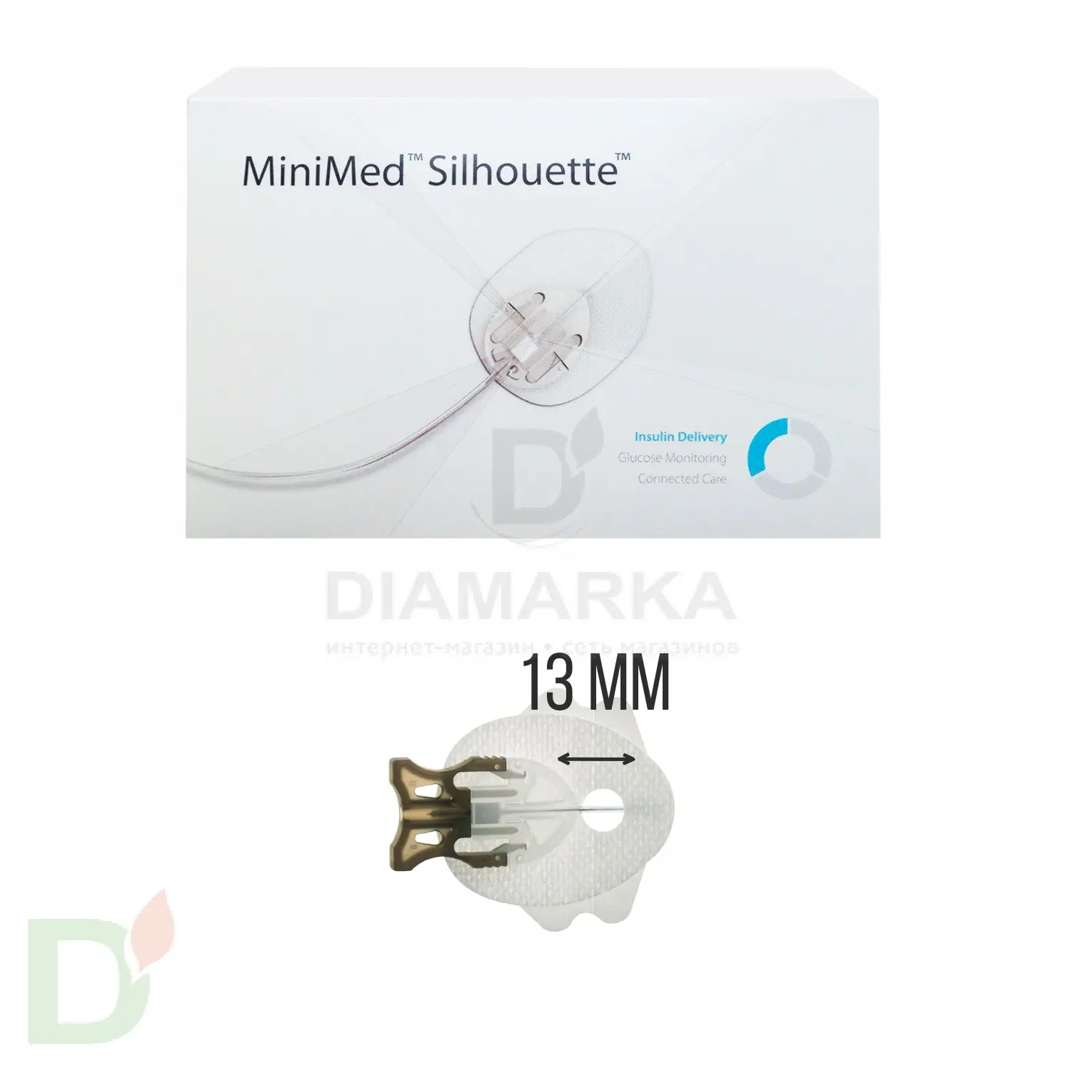 <p> Устройство для инфузии силуэт (Silhouette), канюля 13 мм (ММТ-369) представляет собой мягкую тефлоновую подкожную канюлю, устанавливаемую под углом 30-45 градусов. </p> <hr> <p> Особенности: </p> <ul> <li>Пластиковая подкожная канюля длиной 13 мм</li> <li>Расположение канюли под углом 45-30 градусов по отношению к коже</li> <li>Люеровское соединение - подходит к резервуарам любого производителя с подобным соединением</li> <li>Отсоединение в месте крепления к коже</li> <li>В каждом комплекте - заглушка для приема водных процедур</li> </ul> <p> Размеры: </p> <ul> <li>Длина канюли - 13 мм</li> </ul> <p> Комплектация: </p> <ul> <li>1 упаковка содержит 10 индивидуальных упаковок;</li> <li>1 индивидуальная упаковка  состоит из канюли 13 мм и заглушки для водных процедур </li> </ul> <p> <strong>Срок годности:</strong> указан на упаковке </p> <p> <strong>Производитель:</strong> Medtroniс – США <br> </p> <p> <b>*Стоимость указана за 1 шт. (на 3 дня)</b><br> </p> <h3>Инфузионные системы, резервуары, сенсоры, инъекционные порты - одноразовое стерильное медицинское изделие, гарантия на них не предусмотрена. Срок годности инфузионных наборов для помпы MiniMed - 3 года с даты производства. Срок службы - 2-3 дня.</h3>