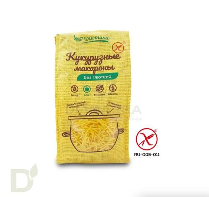Макароны безглютеновые кукурузные Диетика Рожок средний 300г